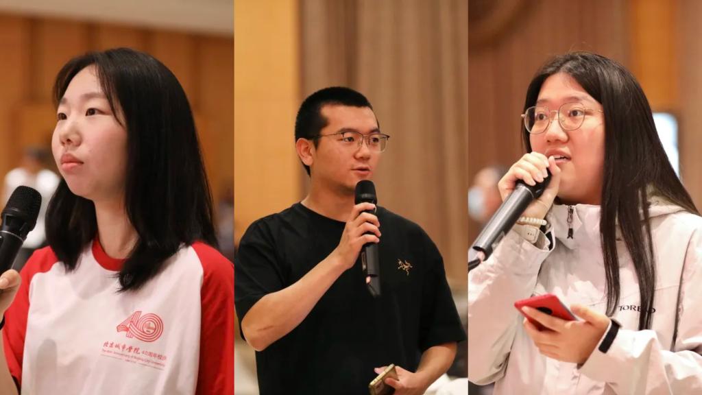活動以集體訪談和互動提問的方式進行,師生沉浸式聆聽先烈故事、感悟革命情懷。現(xiàn)場氣氛莊重而熱烈,李克農將軍之孫李凱城主持訪談,“薪火”紅色宣講團的導師們作為特邀嘉賓,以紅色故事講述和親身經歷分享,為師生們上了一堂生動而深刻的愛國主義教育課。其中,彭湃烈士的孫女、彭士祿院士的女兒彭潔,講述了忠于理想的兩代人的故事,彭湃烈士開辟了中國革命以農村為基地走向勝利的道路,為中國革命的勝利建立了不可磨滅的功勛,彭士祿院士為國家核能事業(yè)不懈奮斗,展現(xiàn)了無私奉獻與科學報國的崇高精神;焦裕祿的外孫余音,深情回憶了外公焦裕祿在蘭考治理“三害”的感人事跡,傳遞了艱苦奮斗、親民愛民的公仆情懷;劉光典之孫劉新宇,講述了祖父劉光典烈士為完成祖國統(tǒng)一大業(yè),牢記使命、不畏犧牲的英勇事跡。