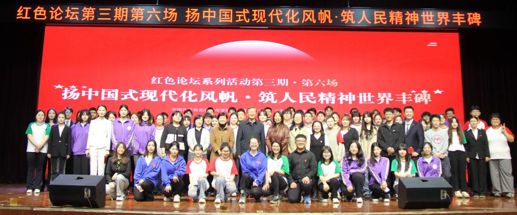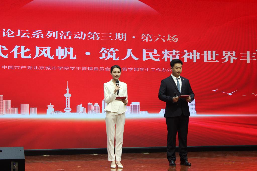 3月26日,由中共北京城市學院學生管理委員會主辦,公共管理學部學工辦承辦的“揚中國式現代化風帆 筑人民精神世界豐碑”紅色論壇第三期(第六場)活動在航天城校區成功舉辦。北京民俗學會會長高巍,我校學工委副書記陳怡、桂溪涓,學管分黨委委員曹繼偉,馬克思主義學院副教授王穎以及航天城校區學團老師出席會議。各學部教師黨員、學生黨員、入黨積極分子和學生代表通過現場及釘釘直播的方式參加。