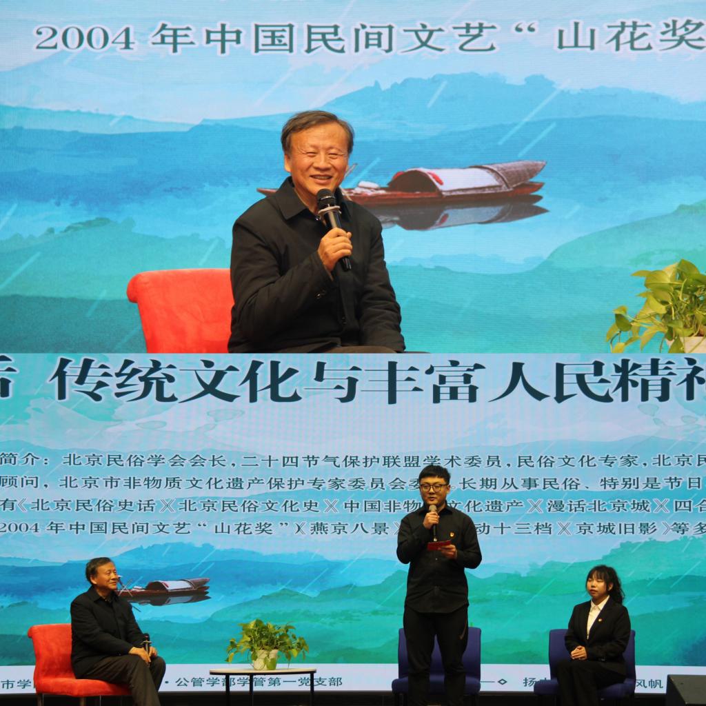 在“賡續文明薪火,熔鑄時代新韻”篇章,活動特邀北京民俗學會會長高巍與公共管理學部師生展開圓桌對話,深入探討了傳統文化在中國式現代化中的作用。高巍強調,中華文明的核心在于傳承與創新,傳統文化是人民精神生活的“根”與“魂”。他結合春節、清明節等傳統節日,分享了如何通過教育和社會實踐讓傳統文化“活”在當下。
