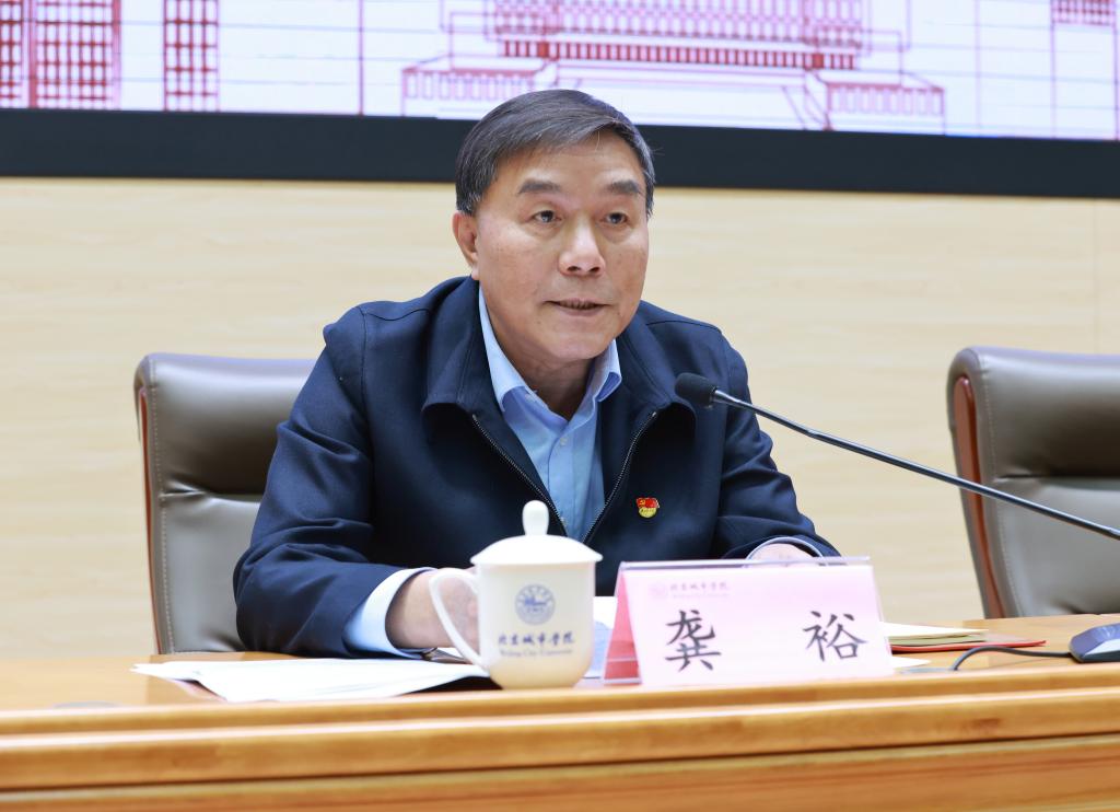 龔裕書記傳達(dá)了中央、北京市相關(guān)會(huì)議精神,回顧總結(jié)了2024年學(xué)校全面從嚴(yán)治黨工作情況。2024年,學(xué)校黨委全面貫徹落實(shí)黨的二十大精神和教育強(qiáng)國戰(zhàn)略,以慶祝建校40周年為契機(jī),錨定建設(shè)高水平民辦大學(xué)目標(biāo),以提升“一融雙高”能力為關(guān)鍵,全面加強(qiáng)黨的領(lǐng)導(dǎo),落實(shí)立德樹人根本任務(wù),以高質(zhì)量黨建引領(lǐng)學(xué)校事業(yè)高質(zhì)量發(fā)展。一是認(rèn)真開展黨紀(jì)學(xué)習(xí)教育,用黨的創(chuàng)新理論凝心鑄魂。二是加強(qiáng)黨建引領(lǐng),增強(qiáng)黨組織政治功能和組織功能。三是落實(shí)立德樹人根本任務(wù),深化“三全育人”。四是持續(xù)推進(jìn)全面從嚴(yán)治黨,強(qiáng)化高質(zhì)量發(fā)展保障。