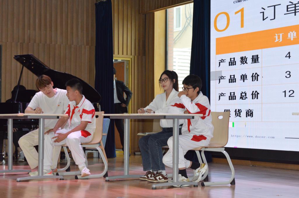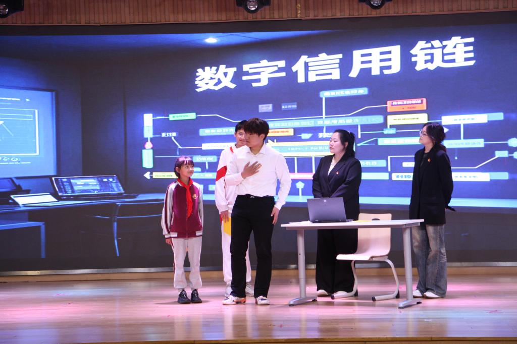 本次活動由經管學部學管、學生黨支部學生參演。開場以魔術表演點燃全場,迅速拉近了兩校師生的距離。實訓項目“經營小達人——沙盤里的會計學”,帶領中小學生進行實戰模擬,通過趣味問答和互動挑戰,引導中小學生在會計發展歷程中汲取力量,傳承先輩愛國精神。以“青年筑夢京彩首都”為主題呈現的《鄉村振興在路上》串燒節目,演繹了青年大學生返鄉助力鄉村供應鏈工程的故事。詩朗誦從舞龍、皮影戲、京劇、茶技等視角詮釋了非遺對鄉村文化振興的作用。《錢袋里的中國》演繹了波斯商人的絲路故事,展現了歷史貨幣的演變。 情景劇《黎海危途:祖國接你回家》展現祖國的強盛與溫暖。《跨越時空的對話:這盛世如你所愿》以“穿越”形式展開了歷史與當下的對話。退伍大學生軍體拳展示,贏得全場熱烈掌聲。