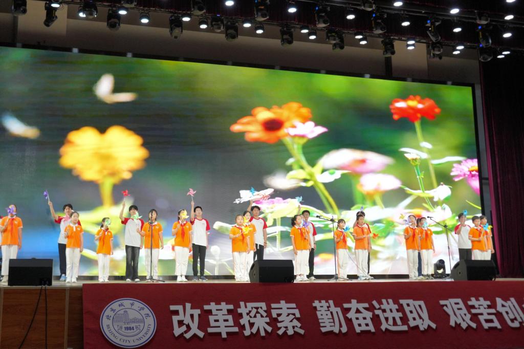 在“青春護綠·薪火相傳”環(huán)節(jié)中,張若亭同學以《運河弦歌譜新篇》為題,通過大運河生態(tài)保護案例,展現(xiàn)青年參與生態(tài)文明建設的生動實踐;冉婧琪同學則以《北京市公共行為文明與生態(tài)文明建設》為題,基于500個觀測點的調研數(shù)據,呼吁公眾以日常行為守護生態(tài)環(huán)境。最具創(chuàng)意的環(huán)保簽署儀式上,師生掃碼承諾的環(huán)保行為實時轉化為虛擬樹干上的綠葉生長,當屏幕上的“生態(tài)之樹”從光禿變得枝繁葉茂,現(xiàn)場響起熱烈的掌聲。活動在楊鎮(zhèn)小學合唱團與大學生的合唱中落幕,在《把未來點亮》的旋律里,孩童與青年的歌聲交織,恰似生態(tài)火炬的代際傳遞。