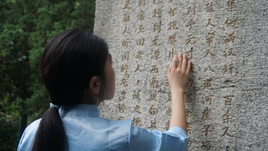 實踐團隊員在龍?zhí)稇K案紀念碑前讀碑文
