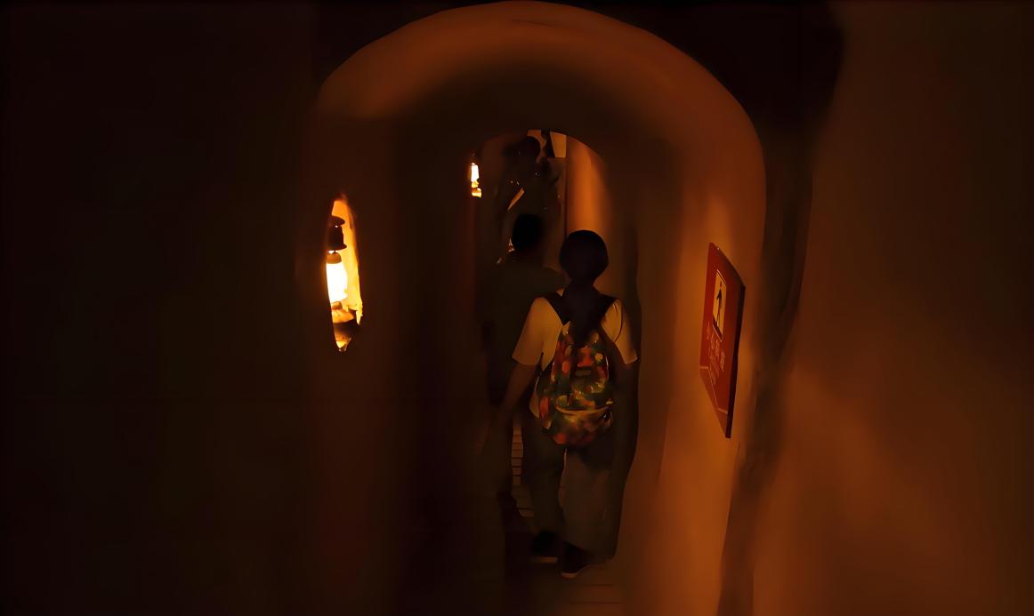 實踐團隊員在焦莊戶地道戰(zhàn)遺址體驗鉆地道