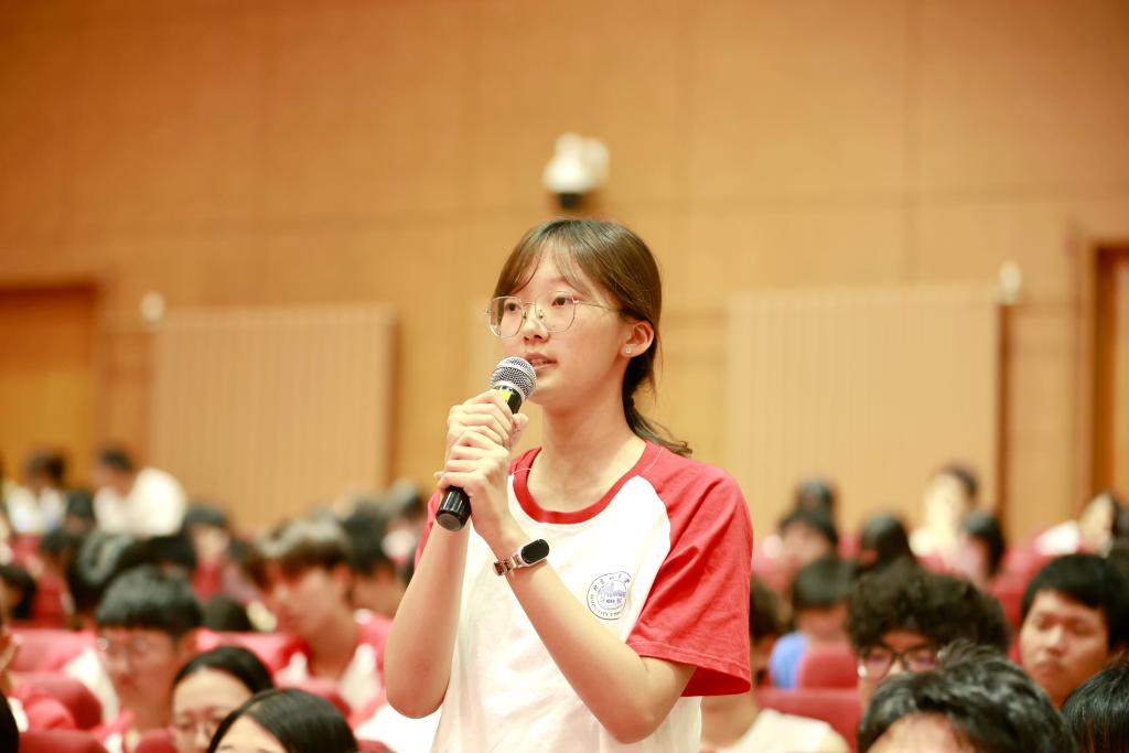 課程尾聲,九三文藝晚會《正義必勝》中的一段視頻將課堂推向高潮。一場與先輩的跨時空對話,與總書記“正義必勝、和平必勝、人民必勝”的莊嚴宣告交織。李凱城再次總結“三個必勝”的深刻內涵,并通過學生代表與嘉賓的互動提問,將歷史與現實緊密連接,引導青年思考自身肩負的時代使命。