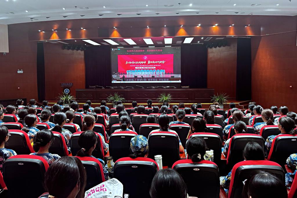 任紅霞飽含熱淚進行發言。一位普通的母親把丈夫和五個兒子送上前線,他們全部戰死沙場,這個故事悲壯而真實地印證了“兵民是勝利之本”。