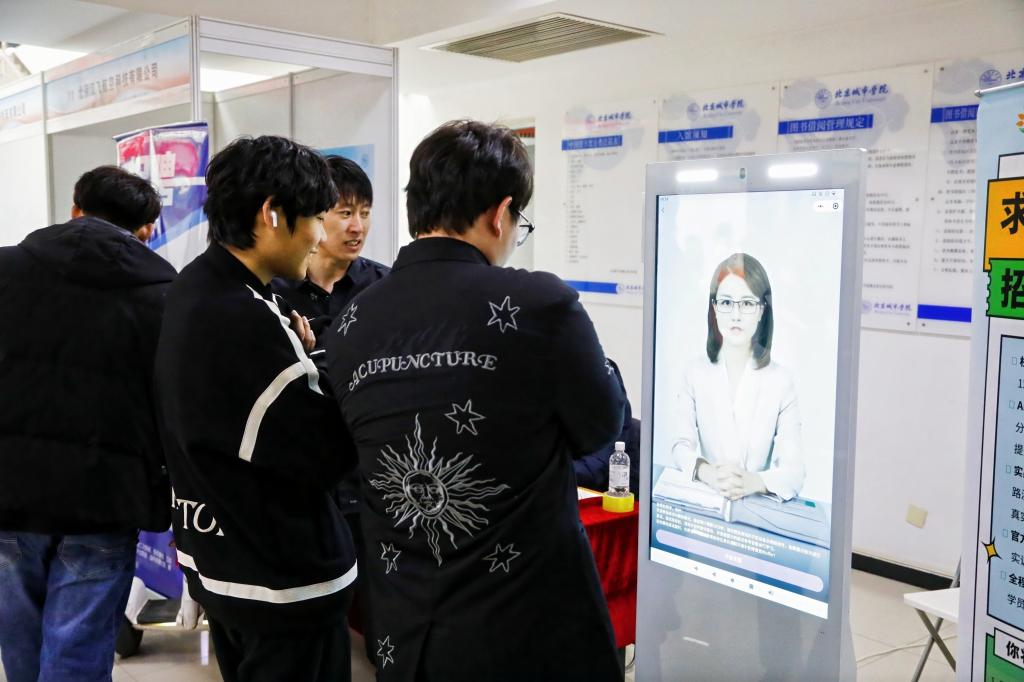 為適應(yīng)智慧就業(yè)新趨勢,學(xué)校首次引入“AI面試體驗區(qū)”,為畢業(yè)生提供科技化求職支持。AI面試系統(tǒng)通過模擬真實面試場景,即時生成語音、表情、邏輯等多維度評估報告,幫助學(xué)生快速掌握面試技巧,依托大數(shù)據(jù)分析技術(shù)為學(xué)生提供個性化面試指導(dǎo)建議,吸引了超200名學(xué)生參與體驗。