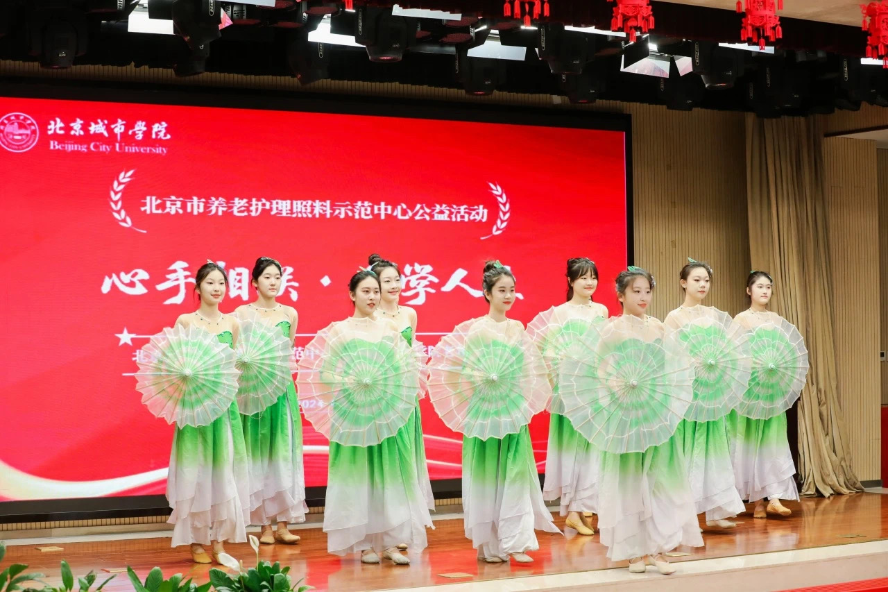 教育學部師生志愿者在中心多功能廳為近百位老人奉上了精彩的演出,歌曲《櫻花時節》《紡織姑娘》、舞蹈《茉莉花》讓現場氣氛溫馨熱烈。