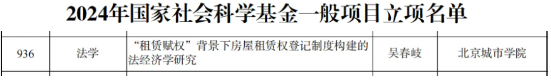 2024年度國家社科基金立項名單公布并完成公示,我校城鎮化研究院(眾城智庫)院長吳春岐教授申請的項目《“租賃賦權”背景下房屋租賃權登記制度構建的法經濟學研究》喜獲立項。