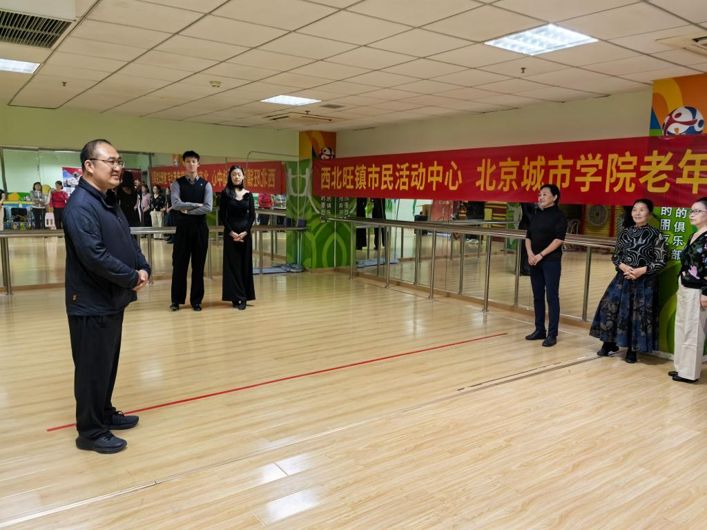 與此同時,北城老年大學負責人李瑾與交誼舞老師王玫富來到了西北旺鎮市民活動中心。中心主任劉曉征熱烈歡迎北城老年大學一行的到來,并祝在場的老人們佳節愉快。李瑾對中心的大力支持和老人們的積極參與表示了誠摯的謝意,并表示北城老年大學愿為大家提供更多學習和交流的機會。