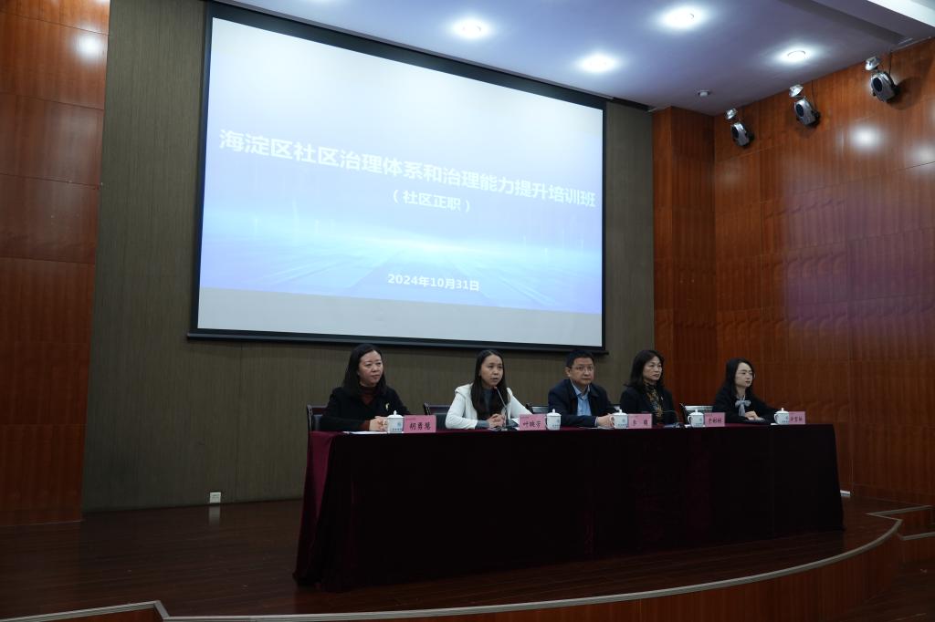 10月31日,2024年海淀區社區治理體系和治理能力提升培訓班開班儀式在我校航天城校區舉行。北京市委社會工作部一處處長李萌、海淀區委社會工作部副部長于彬彬,我校黨委副書記葉映芳、公共管理學部主任胡勇慧出席開班儀式,海淀區29個鎮街的書記、主任、服務站站長等百余人參加。