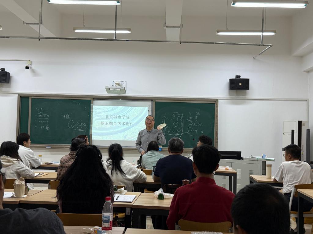 研培項目負責人、我校文化遺產學部主任陳秋榮教授講授的“漆玉融合藝術創作”課程作為研修班開班第一課,該課程旨在打破工藝門類壁壘,引導學員探索大漆的溫潤深邃與玉石的通透堅毅之美。在陳秋榮教授的指導下,學員們學習如何將髹飾、鑲嵌、雕刻等技法與兩種古老材質巧妙結合,實現兩種東方經典材質的對話與共生,創作出兼具東方韻味與現代審美的獨特藝術品。