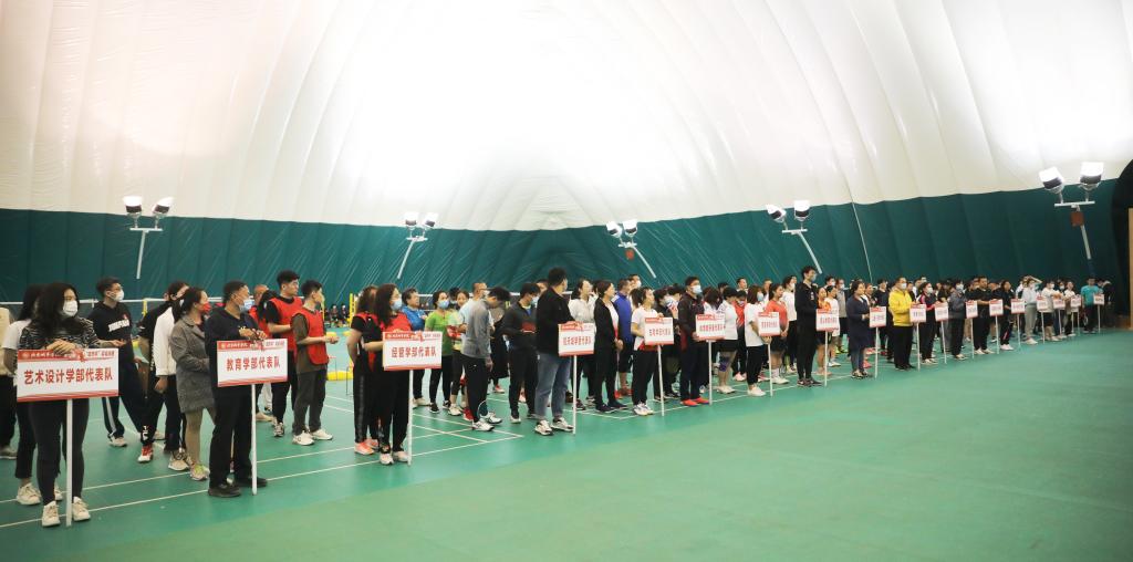 在4月15日的比賽開幕式上,校黨委副書記、副校長秦士友出席并講話。秦士友充分認可了此次比賽的意義,表示期待教職工們能夠有意識地運動起來,健康防疫。校工會主席孫仕敏出席并講話。她希望大家本著 “友誼第一、安全第二、鍛煉第三、比賽第四”的原則賽出風采。