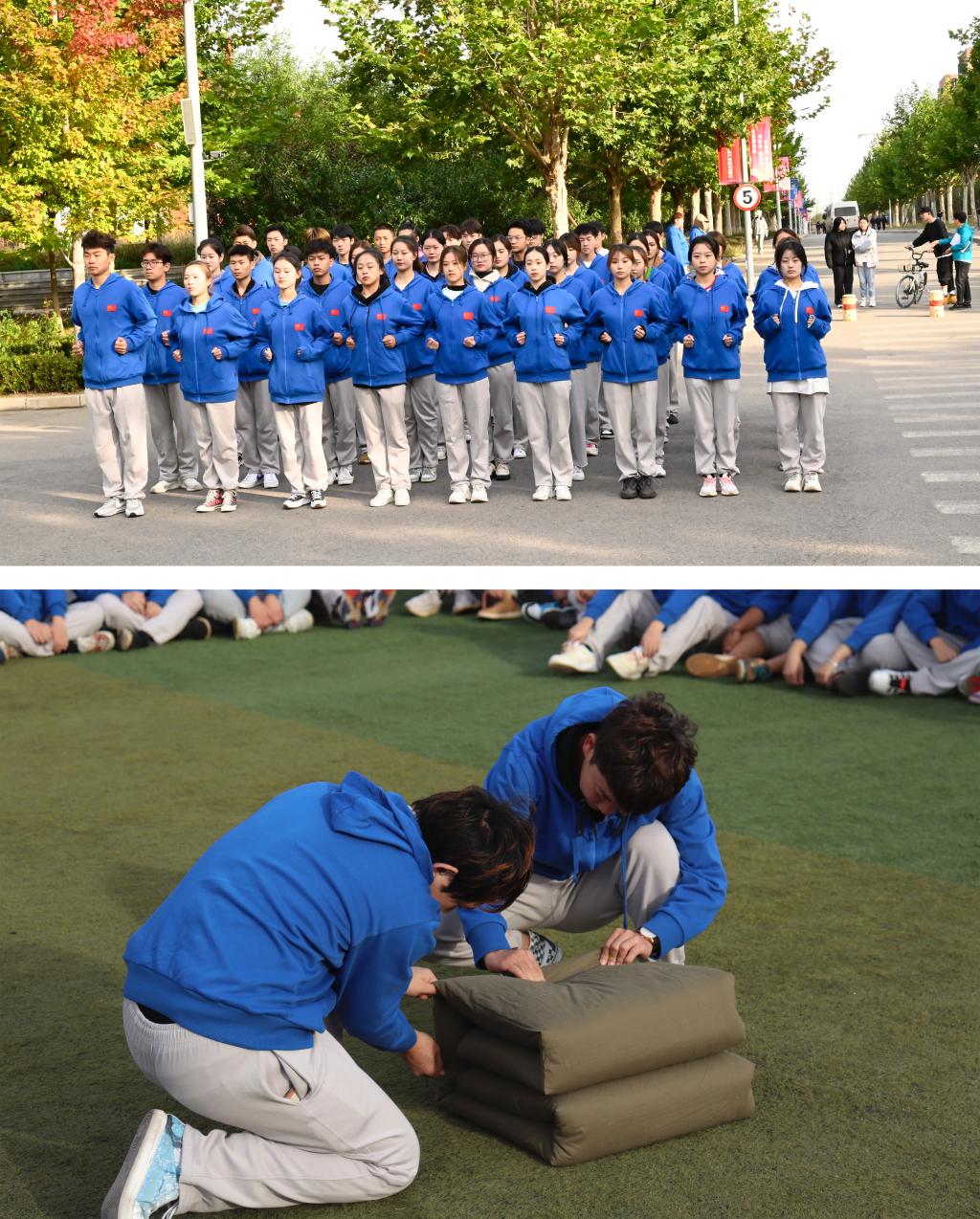 軍訓期間,2020級、2021級的同學們接受了愛國愛校、消防安全、文明住宿、緊急救護等多項主題教育,各營步調統一的同時又各具特色,分別組訓了手語表演、軍體拳、防身術等多項軍事技能訓練,完成了體能、隊列、內務等多項軍事基礎訓練。軍訓期間還穿插了文藝匯演、破冰游戲等學生喜愛的活動,讓學生感受到軍訓的嚴而有情、累而有趣。