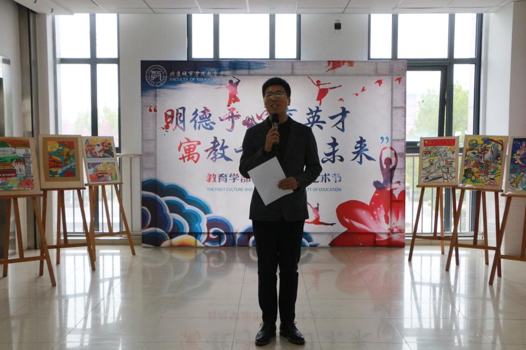 10月26日,教育學部“明德于心育英才,寓教于行向未來”第一屆文化藝術節(jié)啟動儀式在綜合樓二層展廳舉行。教育學部主任周建輝、學部領導班子成員、各教研室主任及教師代表、學部首批優(yōu)秀生及貫通各社團學生代表參加。
