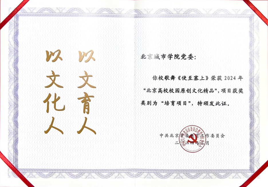 近日,北京市委教育工委公布2024年北京高校校園原創文化精品遴選結果,我校表演學部原創舞蹈《使至塞上》入選北京高校校園原創文化精品(培育項目)。