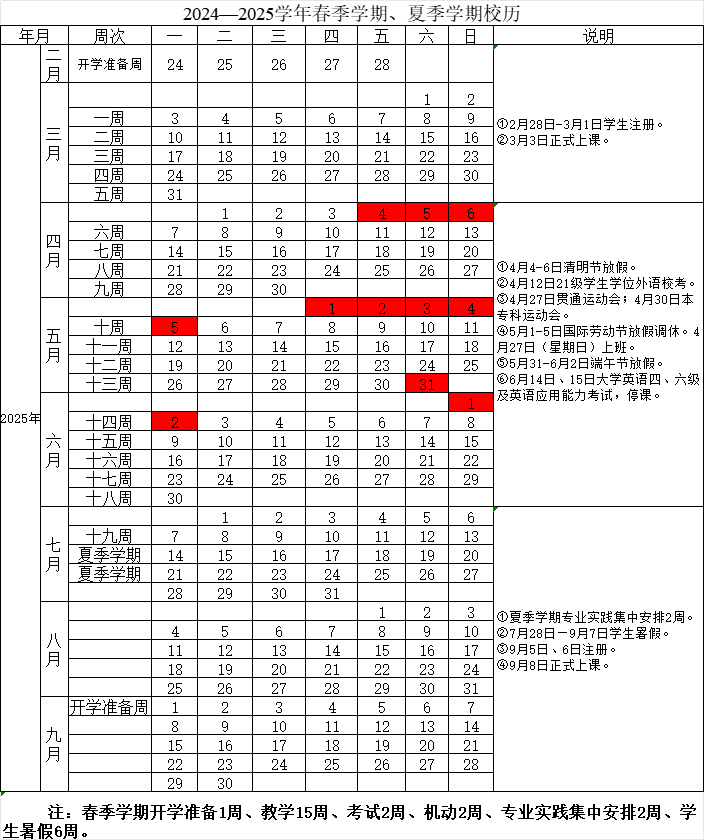2024—2025學(xué)年春季學(xué)期、夏季學(xué)期校歷