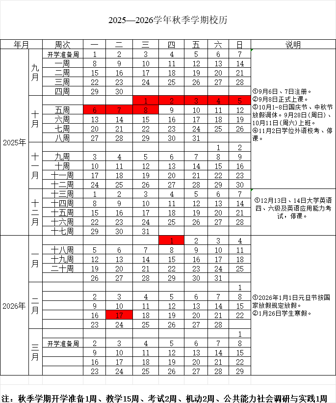 2025--2026學(xué)年秋季學(xué)期校歷