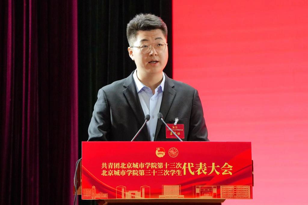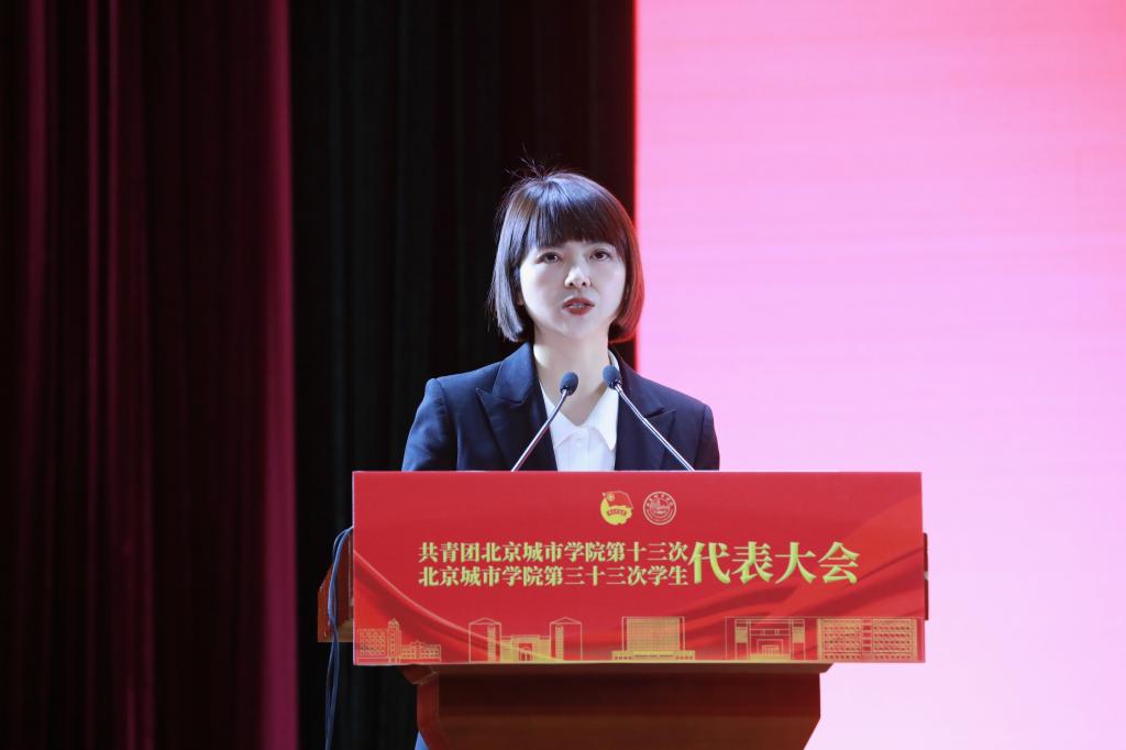 大會主席團成員、校團委書記楊璐代表共青團北京城市學院第十二屆委員會向大會作工作報告,全面總結了學校第十二次團代會以來共青團的工作,分析了新時代學校共青團的任務和使命,對未來五年學校共青團工作進行了規劃部署。校學生會執行主席周伯駿作第三十二屆學生會工作報告。