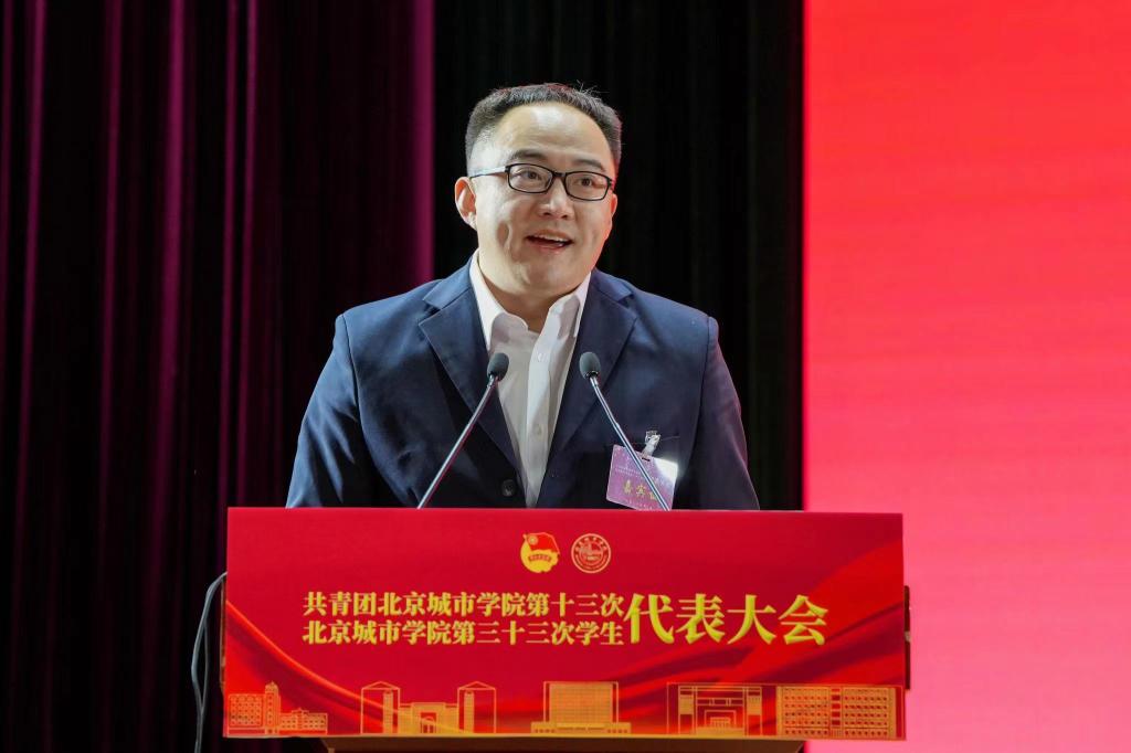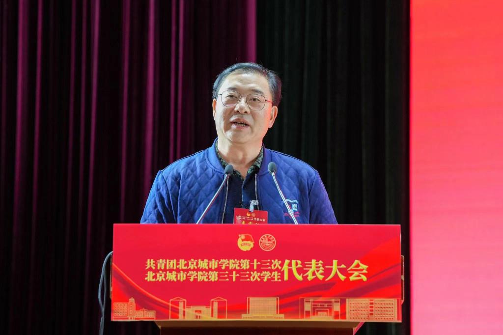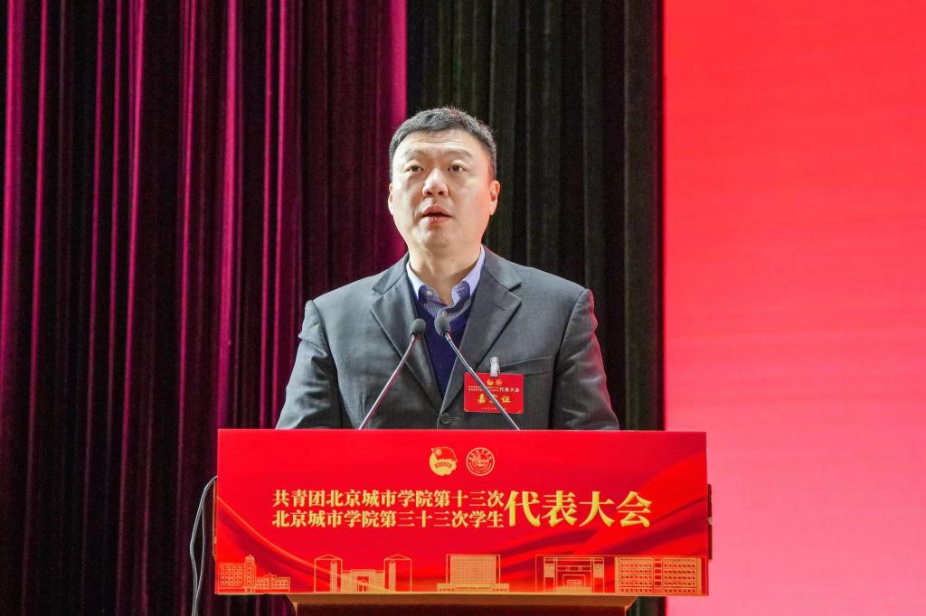 秦士友代表學校黨委和行政向大會的召開表示祝賀,向長期以來關心和支持學校團學工作發展的上級單位和社會各界人士表示感謝,向全校青年朋友們致以問候。他指出,過去五年,學校共青團充分發揚“黨有號召,團有行動”的光榮傳統,緊密圍繞立德樹人的根本任務開展各項工作,在思想引領、校園文化建設、社會實踐、志愿服務等方面取得了豐碩成果。校學生會積極響應并履行學聯的工作任務,組織廣大同學支持并參與學聯的各項活動,在本校同學之中以及校際之間的影響力不斷提升。他表示,學校黨委始終關心和重視青年工作。他希望,新一屆團委和學生會持續提高政治站位,引導青年堅定理想信念;始終圍繞中心服務大局,服務高質量人才培養;不斷加強自身建設,努力使工作邁上新臺階。全校共青團組織和團干部要更加緊密地團結在以習近平同志為核心的黨中央周圍,團結帶領全校團員青年,胸懷祖國、志存高遠,腳踏實地、砥礪奮進,乘新時代春風,努力開創北京城市學院共青團工作新局面,為青年成才發展、為學校建設發展作出新的更大貢獻。
