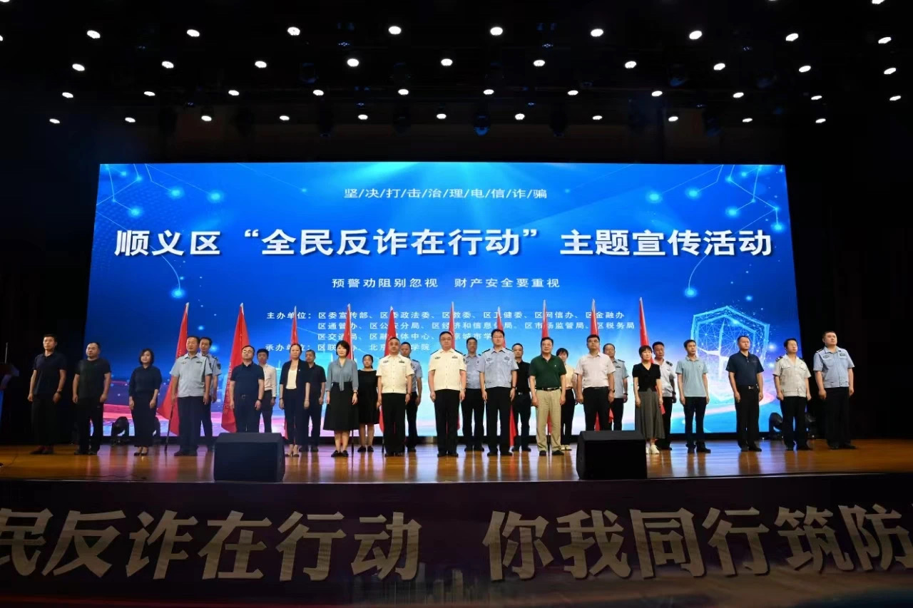 6月29日,我校聯合北京市公安局順義分局、順義區打擊治理電信網絡新型違法犯罪聯席會議辦公室、區委宣傳部、楊鎮政府等共同舉辦順義區“全民反詐在行動”主題宣傳活動。