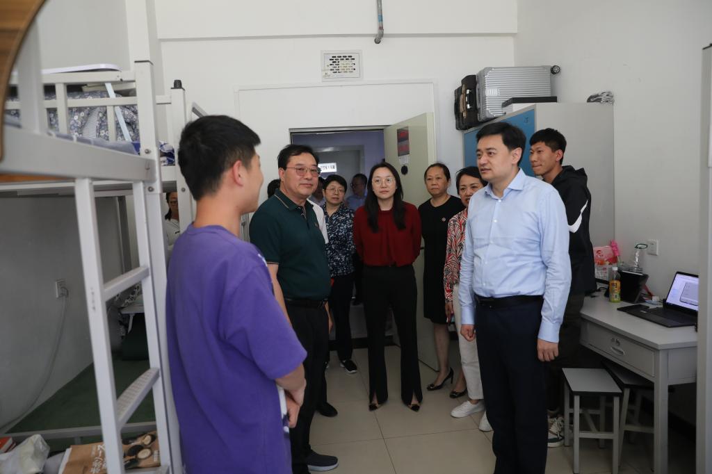 崔小浩來到學校監控中心、消防控制室、學生宿舍等處,詳細了解校園安保監控系統、安全問題監測及應急處置情況、宿舍安全管理制度等,檢查消防通道的通暢性、消防設施的使用管理情況及消防安全措施落實情況,仔細詢問學校在安全方面面臨的困難以及需要屬地協調解決的問題,并在走訪中與學生熱切交流,詢問學生生活學習情況。