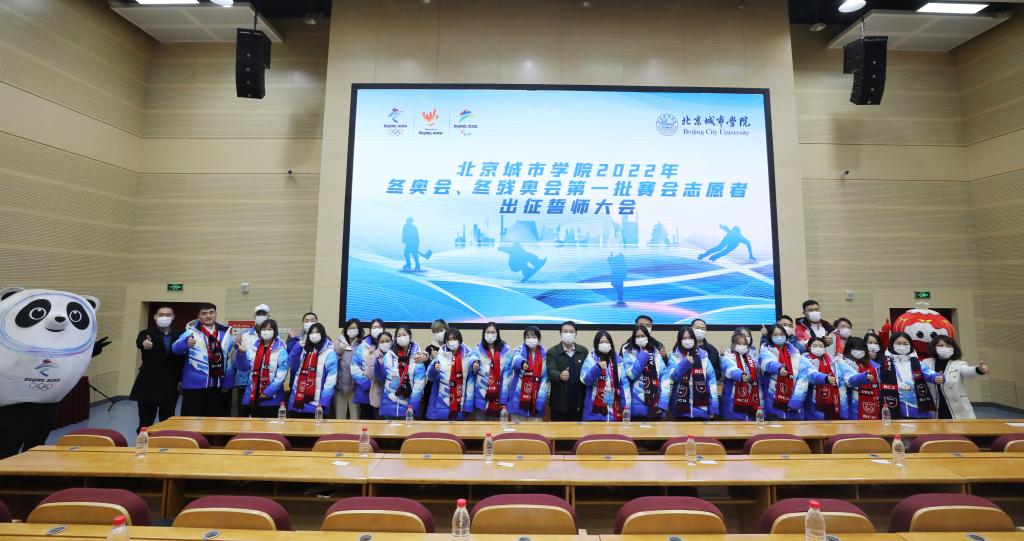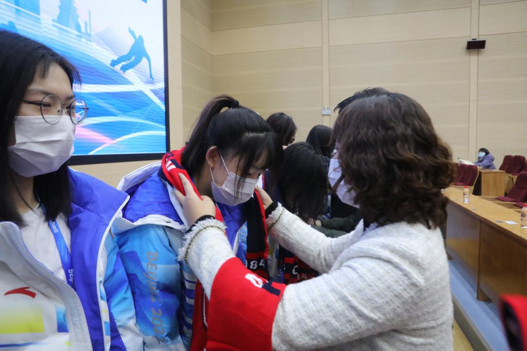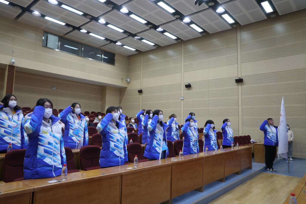 學(xué)工委書(shū)記楊培玉為出征冬奧志愿者服務(wù)隊(duì)授旗。隨后,志愿者們集體宣誓:將共同踐行“奉獻(xiàn)、友愛(ài)、互助、進(jìn)步”的志愿服務(wù)理念,認(rèn)真落實(shí)冬奧會(huì)志愿服務(wù)工作的標(biāo)準(zhǔn)要求,以?xún)?yōu)質(zhì)的服務(wù)向世界展示北城學(xué)子的責(zé)任擔(dān)當(dāng)和時(shí)代風(fēng)采。