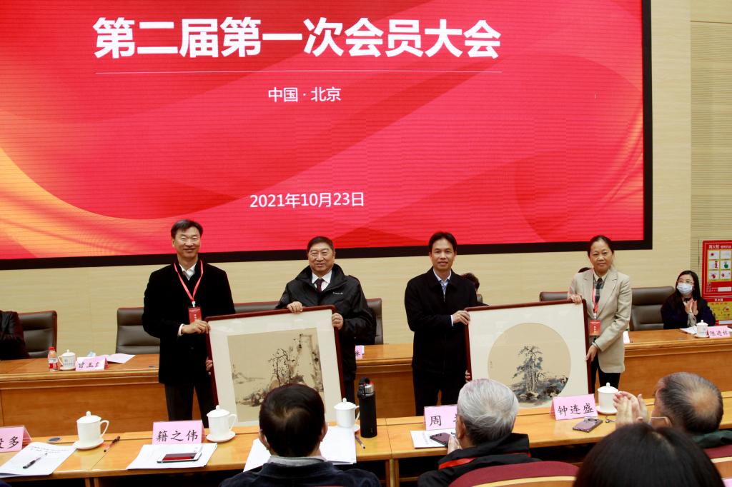 新當選的溫宗勇會長和曾玉紅監事長分別向籍之偉和蔡派贈送了陳秋榮教授的書畫作品,并對二位同志為協會發展奠定的良好基礎表達了誠摯的謝意。