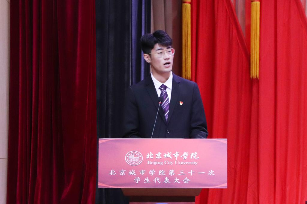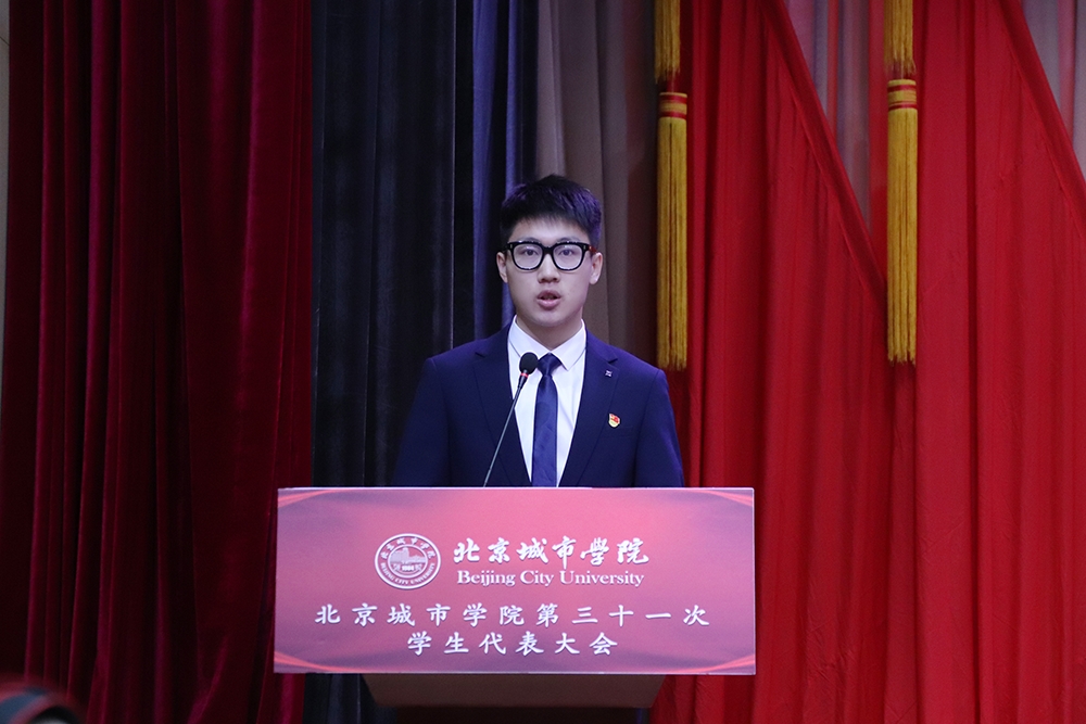 北京市學生聯合會駐會執行主席王宇陽對本次大會的召開表示熱烈的祝賀,并表示北京城市學院始終堅持“全心全意為同學服務”的宗旨,希望未來能將青春磨練出色。