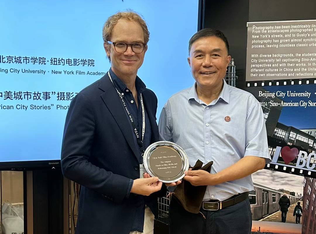 7月19日下午,北城師生一行在紐約電影學院進行了“2024中美城市故事”攝影作品集中展映,張心遠致開幕辭并主持活動,參展學生依次展示了中美城市攝影作品并完成全英文闡述,紐約電影學院攝影系主任David Mager教授和我校張引副教授逐一對學生作品進行了專業點評,兩校教授對我校學生作品展現出的創造力與活力表示高度肯定。