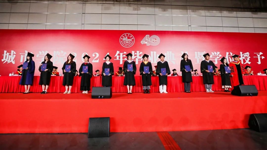 典禮期間,還舉行了“優(yōu)秀畢業(yè)生”和“服務(wù)國家戰(zhàn)略畢業(yè)生”頒獎、2024屆校友聯(lián)絡(luò)員聘書頒發(fā)、感恩獻(xiàn)花、學(xué)位授予儀式、與校長合影等活動。