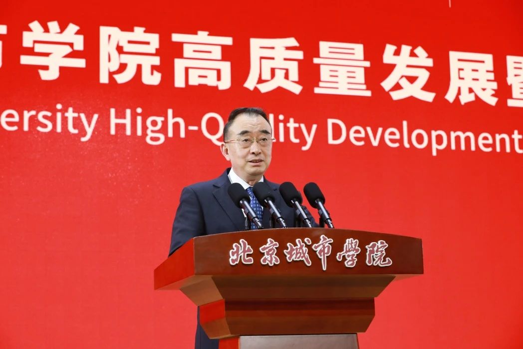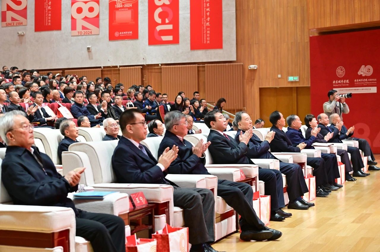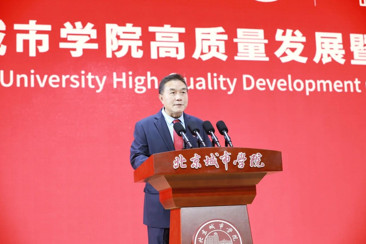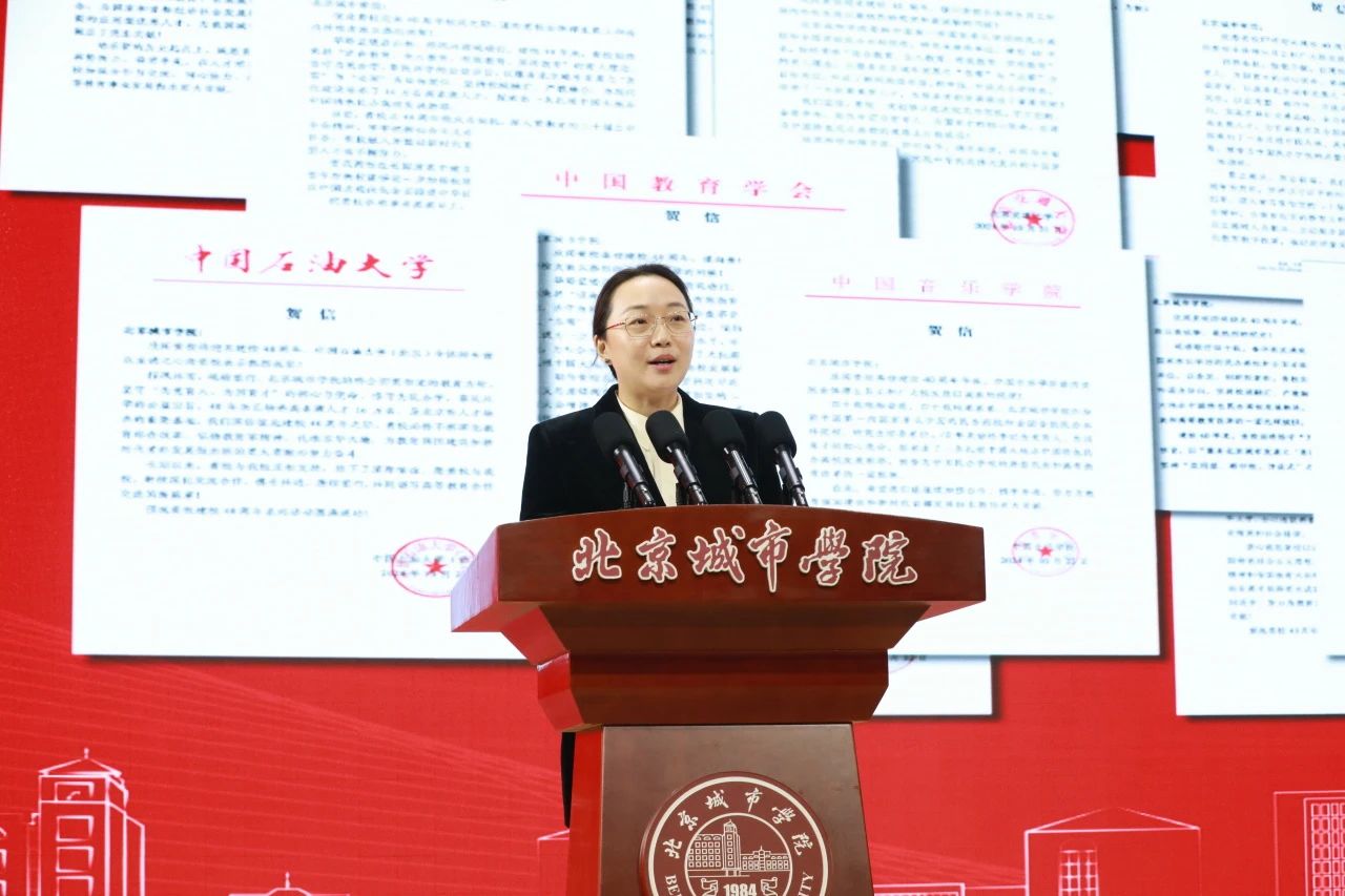 司馬紅副巿長代表北京市委、市政府講話,對北京城市學院40年來的發展成就給予了充分肯定,指出北京城市學院始終堅持黨的全面領導,把滿足人民群眾對優質高等教育的向往作為奮斗目標,以服務首都城市發展和產業發展為己任,扎根京華大地,辦“市民身邊大學”和“產業伙伴大學”,為首都的城市治理和產業轉型升級培養了大批高素質的應用型人才,為我國高等教育改革和首都經濟社會發展作出了重要貢獻。她強調,當前教育系統正在深入落實全國教育大會精神,北京市正在加快建設高質量教育體系,推進教育、科技、人才一體化發展,北京城市學院作為北京高等教育的重要組成部分,要以黨的二十大、二十屆三中全會和全國教育大會精神為指引,進一步強化政治引領,堅持守正創新,勇于攻堅克難,牢牢把握社會主義辦學方向,緊緊抓住高質量發展的生命線,更好地服務新時代首都發展,為推進強國建設、賦能首都發展貢獻更多的“北城智慧”。同時,市委、市政府將繼續關心和支持學校的建設與發展,助力學校早日建成高水平應用型大學。