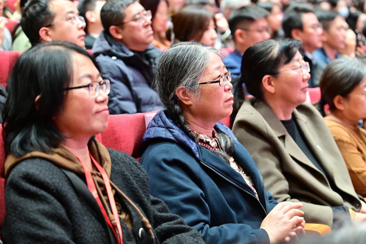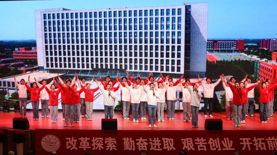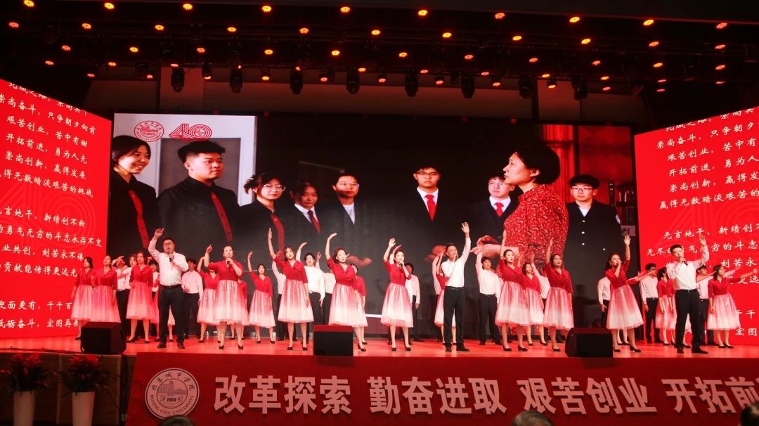 慶祝大會在莊嚴的國歌聲中拉開帷幕。劉林校長作主旨報告,深情回顧了學校從創立之初的艱辛探索到逐步發展壯大的風雨歷程,深刻總結了建校四十年來“六個始終堅持”的主要經驗,用一個個生動的數據和實例展現了學校40年來的輝煌發展軌跡。他指出,從來沒有從天而降的潑天富貴,學校取得的一切成績都是在各級黨委、政府領導下和社會各界支持下,歷屆師生弘揚校訓精神,以無盡的汗水、智慧、心血換來的。劉林校長含淚緬懷了傅正泰校長等創業先賢、已故同仁,并深深鞠躬向所有支持、幫助、關心過學校工作的單位與人士,向所有為學校發展作出了貢獻的歷屆師生、校友表達真摯的感謝!