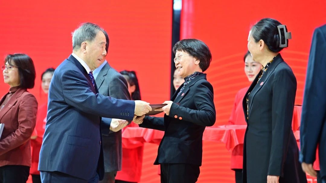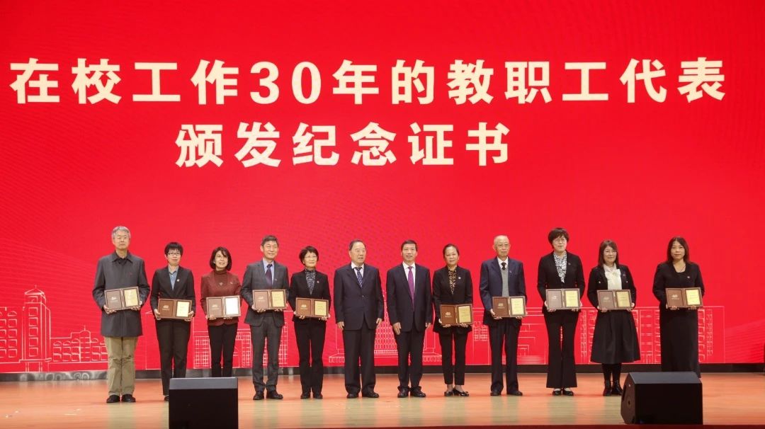 老領導張福森部長和校學術委員會主任郭廣生教授為在校工作30年的教職工代表們頒發紀念證書,感謝他們砥礪深耕、培育桃李。