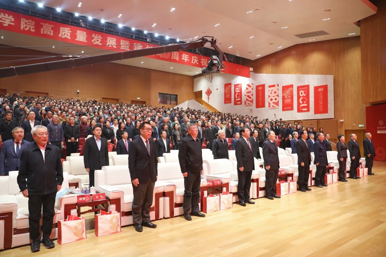 校黨委書記龔裕教授主持大會,吳毓華、成運花、冉楠、龐東輝、夏雨生等學校老領導,常務副校長田培源教授等校領導、部分退休干部教工、部分校友和師生代表一千余人參加了大會。會后大家紛紛表示:四十載風雨砥礪,北城人薪火相繼,一定不負期望,不畏艱險,不懈奮斗,續寫榮光,再創輝煌,為強國建設、北京發展作出新的重要貢獻!