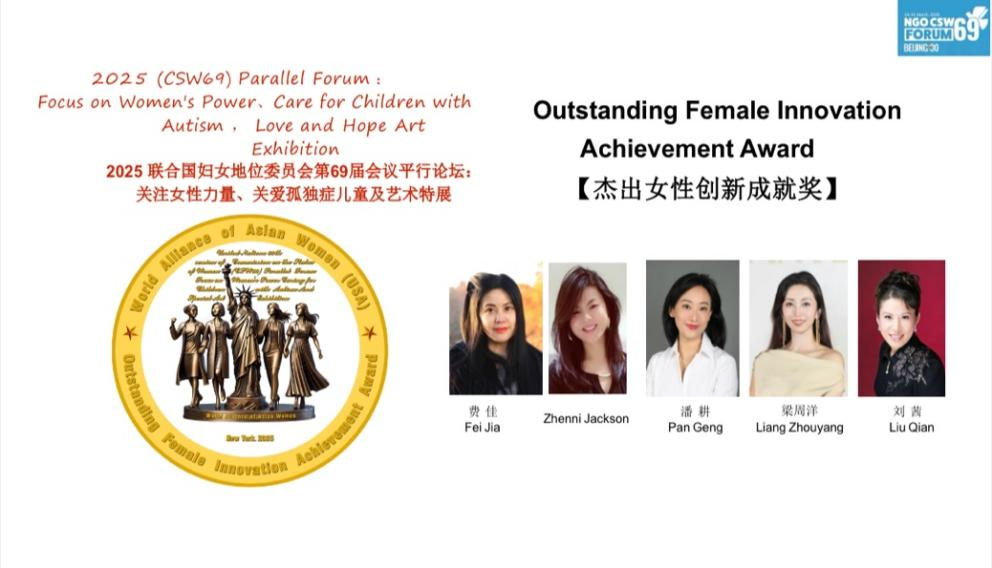 2025年聯合國婦女地位委員會第69屆會議(CSW69)于3月10日至3月21日在聯合國總部舉行。我校表演學部廣播電視編導(影視編創)專業教師潘耕受世界亞裔女性聯盟邀請,于紐約聯合國總部外交會議廳參加會議平行論壇:聚焦女性力量,關愛孤獨癥兒童及“愛與希望”藝術特展,并獲得“杰出女性創新成就獎”。