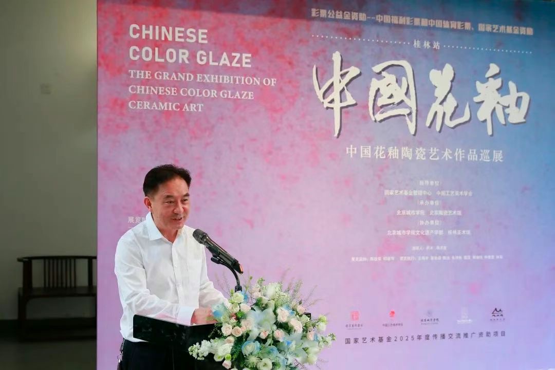4月19日上午,國家藝術基金2025年傳播交流推廣資助項目——“中國花釉陶瓷藝術作品巡展(桂林站)”在桂林美術館開幕。此次展覽由國家藝術基金和中國工藝美術學會支持,我校和北京陶瓷藝術館承辦,本次桂林站是該項目全國巡展的首站,匯聚了中國花釉陶瓷藝術領域最具代表性的學術資源與創作成果。