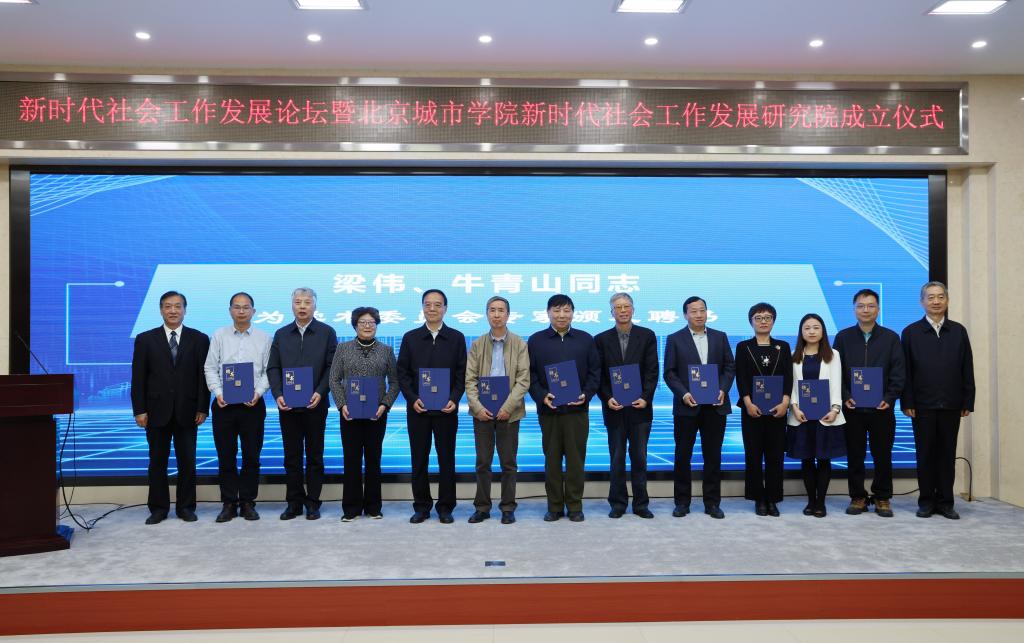 校黨委書記龔裕宣讀研究院專家委員會名單,聘請中國社會工作教育協會會長、北京大學社會學系馬鳳芝教授為首席專家,中共中央黨校(國家行政學院)丁元竹教授為學術委員會主任,聘請蘇國霞、江英、趙小衛、謝立中、王喆、孫瑩、張成崗、尹欒玉、祝玉紅、李曉壯、陳鋒、楊智輝等12位專家學者為特聘專家,梁偉同志和牛青山同志共同為學術委員會專家頒發聘書。