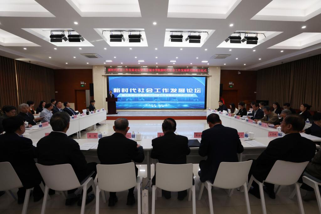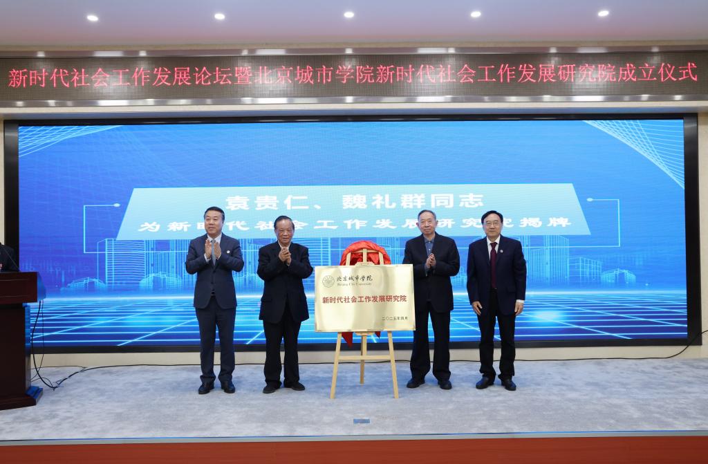 4月27日,新時代社會工作發展論壇暨北京城市學院新時代社會工作發展研究院成立儀式在我校中關村創新智庫中心舉行。教育部原部長袁貴仁同志,國務院研究室原主任魏禮群同志,中國社會工作聯合會會長、中央國家機關工委原副書記陳存根同志,北京市關心下一代工作委員會主任、市委原常委梁偉同志,北京市政協原副主席、北京市社科聯主席牛青山同志,市委社會工作部相關負責同志,及來自中央黨校、中國青年政治學院、北京大學、清華大學、中國人民大學、北京師范大學、北京林業大學、北京工業大學、北京市社會科學院等高校和科研單位的有關領導、專家及我校師生130余人參會。我校學術委員會主任郭廣生、副校長胡麗琴分別主持開幕式和主旨演講環節。