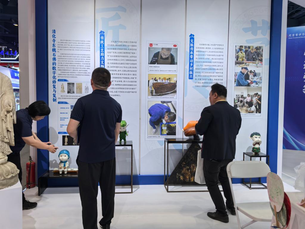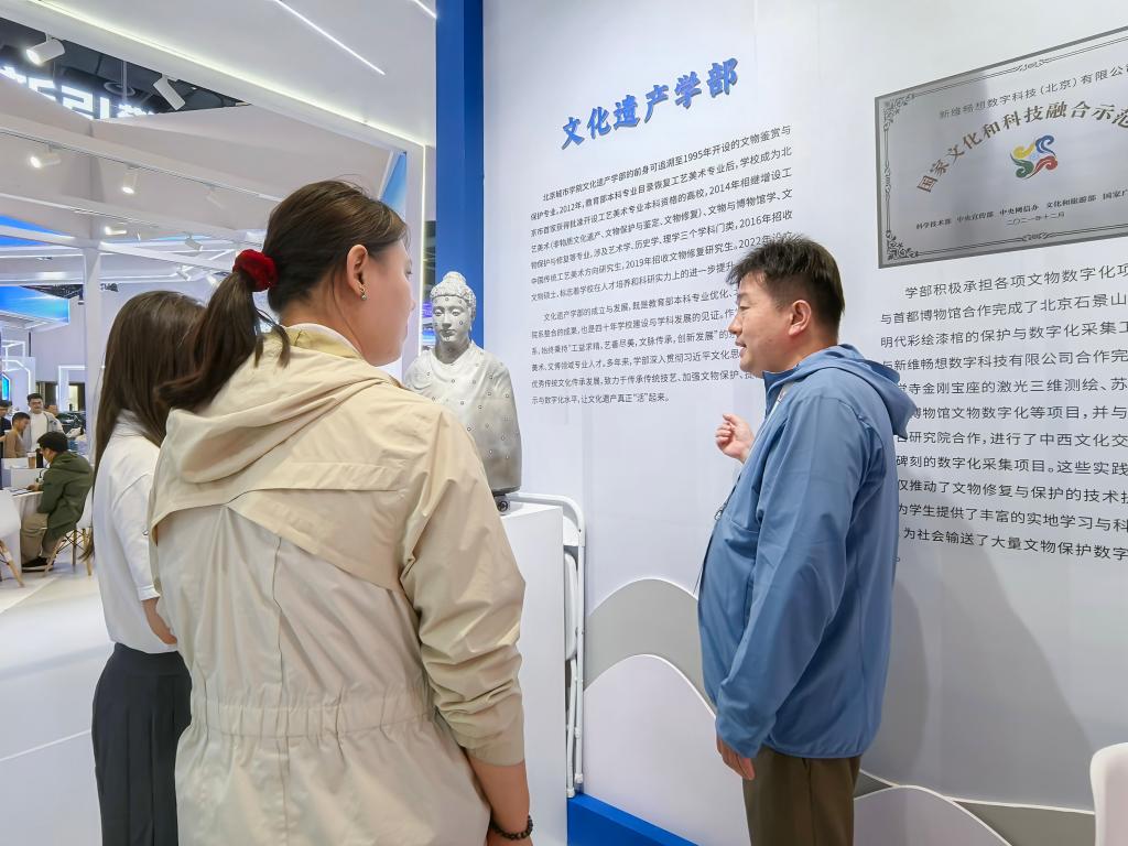 5月8日至11日,第二十七屆中國北京國際科技產業博覽會在國家會議中心舉辦,我校以“數智創新 匠心傳藝”為主題,通過實物陳列、圖文展板、視頻演示、互動體驗等形式,展示了學校在現代科技與文物保護修復、非遺技藝傳承融合方面的創新成果。