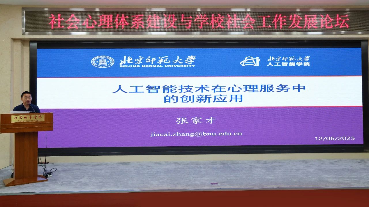 劉林校長致開幕辭,宣布北城綠蘿社會心理智能創新發展研究院正式成立,并深刻闡述了研究院在社會心理服務體系建設與學校社會工作領域的戰略定位與發展愿景。他強調,面對多發的學生心理問題,傳統干預手段已難以破局,需通過人工智能與傳統手段融合創新。此次校企共建研究院是學校學科建設與社會服務的重要戰略舉措,打造這一國內領先的社會心理智能交叉研究平臺,將助力構建青少年心理健康支持體系與推動學校社會工作高質量發展。