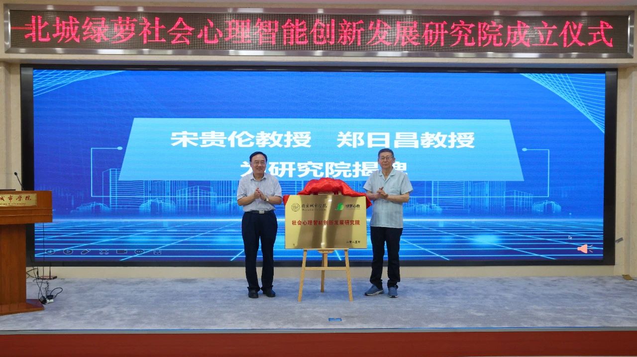 在熱烈的掌聲中,宋貴倫教授與鄭日昌教授共同為北城綠蘿社會心理智能創新發展研究院揭牌,標志著這一聚焦社會心理智能創新的研究平臺正式啟航。