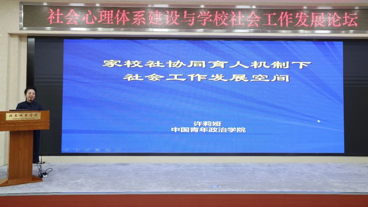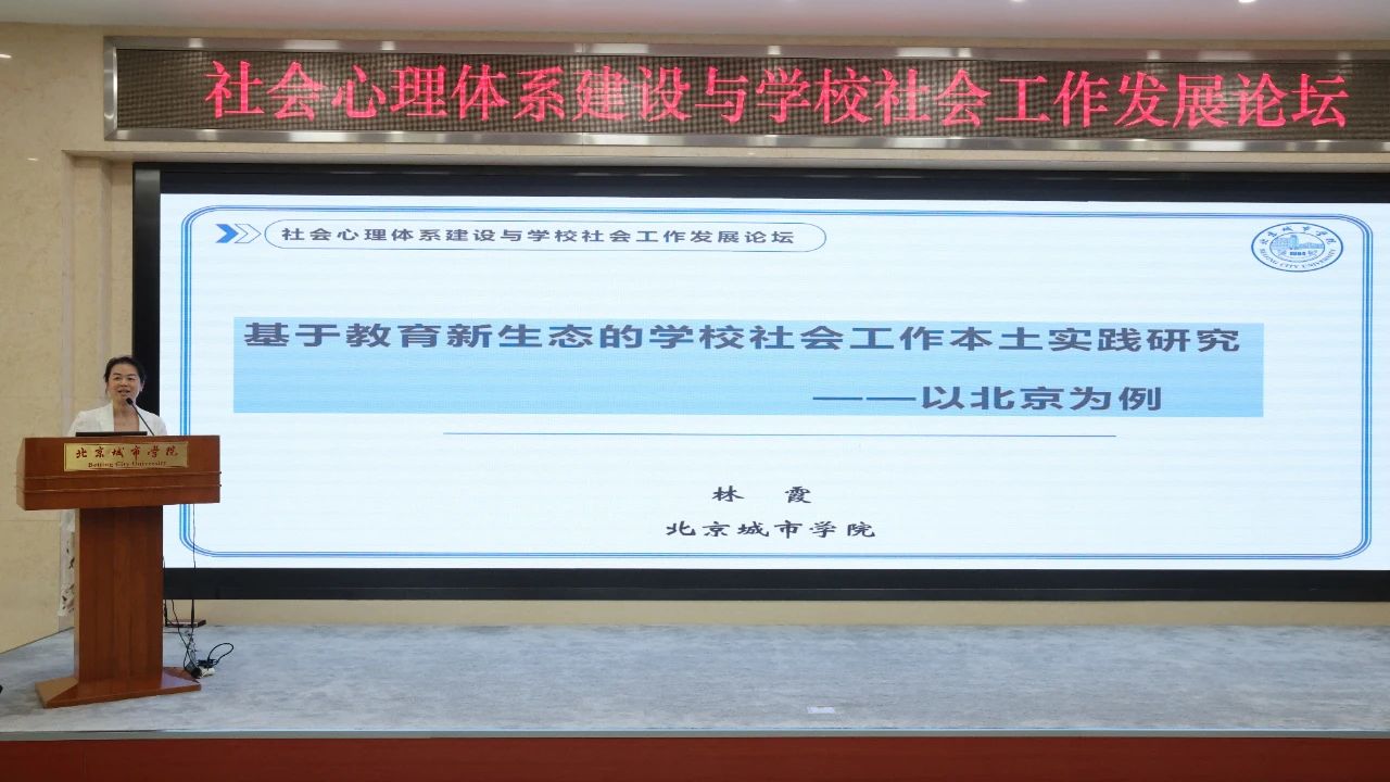 我校公共管理學部教授、中國社會工作學會學校與家庭專業委員會副主任委員林霞以“基于教育新生態的學校社會工作本土實踐研究——以北京為例”為題,分享了我校師生在學校社會工作本土化實踐中的經驗成果,提出了教育新生態背景下學校社會工作發展的創新策略。
