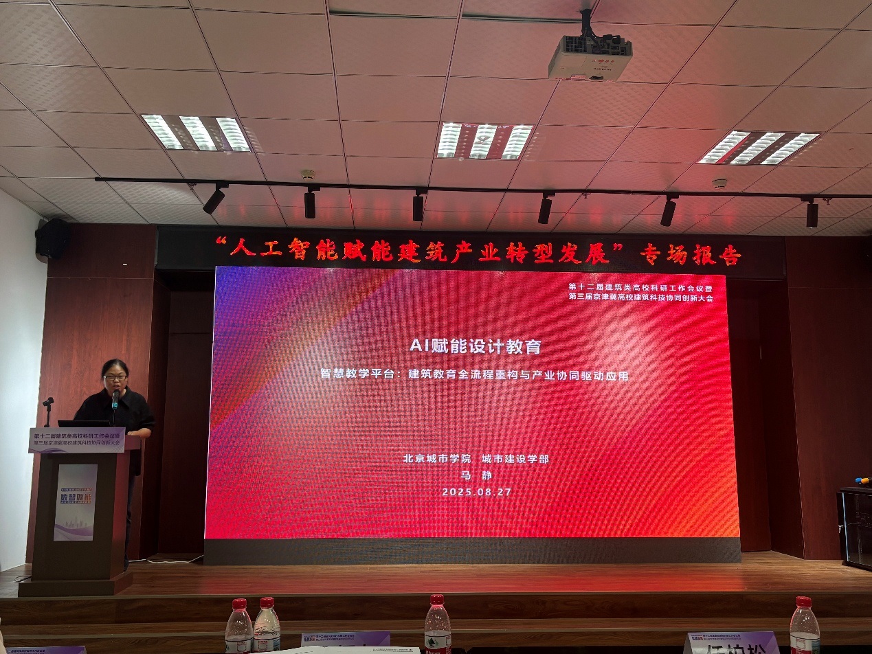 我校憑借在建筑學(xué)科領(lǐng)域的科研積累與人才培養(yǎng)優(yōu)勢,正式加入京津冀高校建筑科技協(xié)同創(chuàng)新聯(lián)盟。在“人工智能賦能建筑產(chǎn)業(yè)轉(zhuǎn)型發(fā)展”專場報告中,馬靜教授以“AI賦能設(shè)計教育”為題作主題分享。報告聚焦“智慧教學(xué)平臺:建筑教育全流程重構(gòu)與產(chǎn)業(yè)協(xié)同驅(qū)動應(yīng)用”展開,系統(tǒng)介紹依托AI構(gòu)建智慧教學(xué)平臺、實現(xiàn)建筑教育全流程數(shù)字化重構(gòu)的實踐經(jīng)驗,探討如何通過校企協(xié)同培育適應(yīng)建筑產(chǎn)業(yè)智能化轉(zhuǎn)型的高素質(zhì)人才。報告內(nèi)容兼具理論創(chuàng)新性與實踐指導(dǎo)性,得到現(xiàn)場專家學(xué)者的廣泛認(rèn)可與積極討論。