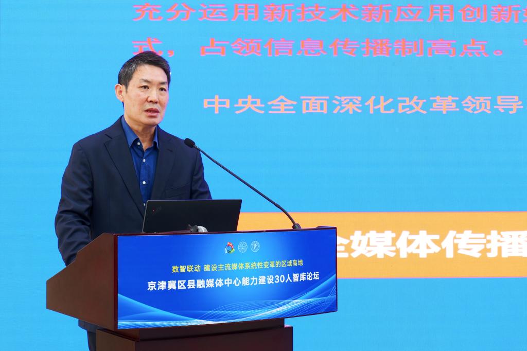 中國(guó)新聞出版研究院副院長(zhǎng)崔海教首先作題為《京津冀區(qū)縣融媒體中心能力建設(shè)研究報(bào)告》的演講。他指出,近年來,京津冀區(qū)縣融媒體在生產(chǎn)傳播工作創(chuàng)新、輿論引導(dǎo)、技術(shù)研發(fā)與應(yīng)用創(chuàng)新、國(guó)際傳播等能力建設(shè)上取得諸多亮點(diǎn),但同時(shí)也面臨體制機(jī)制碎片化、內(nèi)容供給同質(zhì)化、運(yùn)營(yíng)思維不足、復(fù)合型人才短缺及服務(wù)功能偏弱等挑戰(zhàn)。為此,應(yīng)在協(xié)同機(jī)制一體化、內(nèi)容生態(tài)特色化、營(yíng)收體系多元化、復(fù)合人才專業(yè)化、服務(wù)能力綜合化與地方傳播國(guó)際化等方面持續(xù)著力。