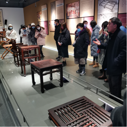 1月11日下午,國際文化與傳播學部黨支部組織全體黨員參觀了北京南中軸線上一座家具文化代表的全新地標建筑——金隅龍順成京作非遺博物館。博物館設有“源自宮廷、龍順大成”“法度嚴整、歷久彌新”“匠心傳承、經典永恒”三個展區,涵蓋“木韻華風”“薪火相傳”“國之重器”“竭誠致遠”等多個章節。在工作人員講解下,教師黨員們被百年京作文化深深吸引,深刻地感受到“京作硬木家具制作技藝”的深厚底蘊。本次參觀活動也邀請了文傳學部學工辦教師黨員一起參加。