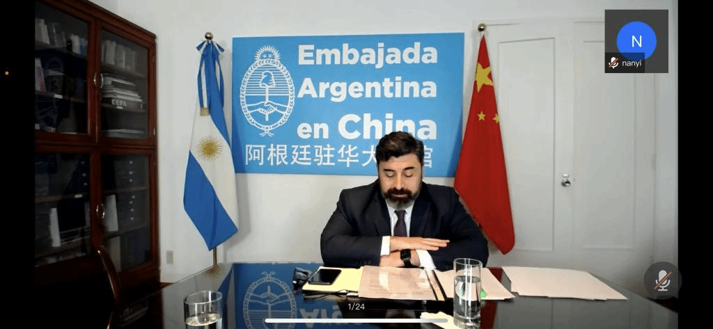 本次會議在線上舉行,首先,布宜諾斯艾利斯市政府秘書長和國際關(guān)系部負(fù)責(zé)人Fernando Straface發(fā)表了歡迎致辭,介紹了本次會議旨在為中阿大學(xué)提供交流的平臺,使兩國大學(xué)之間建立起聯(lián)系,共同促進(jìn)西班牙語、漢語的發(fā)展以及兩國間高等教育方面的交流合作。致辭結(jié)束后,阿根廷駐華使館為中阿大學(xué)提供了限時一對一交流的機(jī)會。
