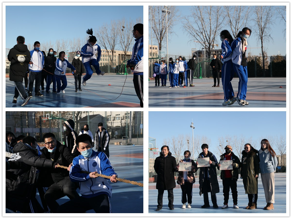 體育教師組組長趙小勇老師宣布運動會正式開始。在十人八字長繩、運氣球、60米接力、摸石過河及團體拔河五個比賽項目中,同學們活力四射不懼嚴寒,散發出洋溢的熱情和對運動的喜愛。
