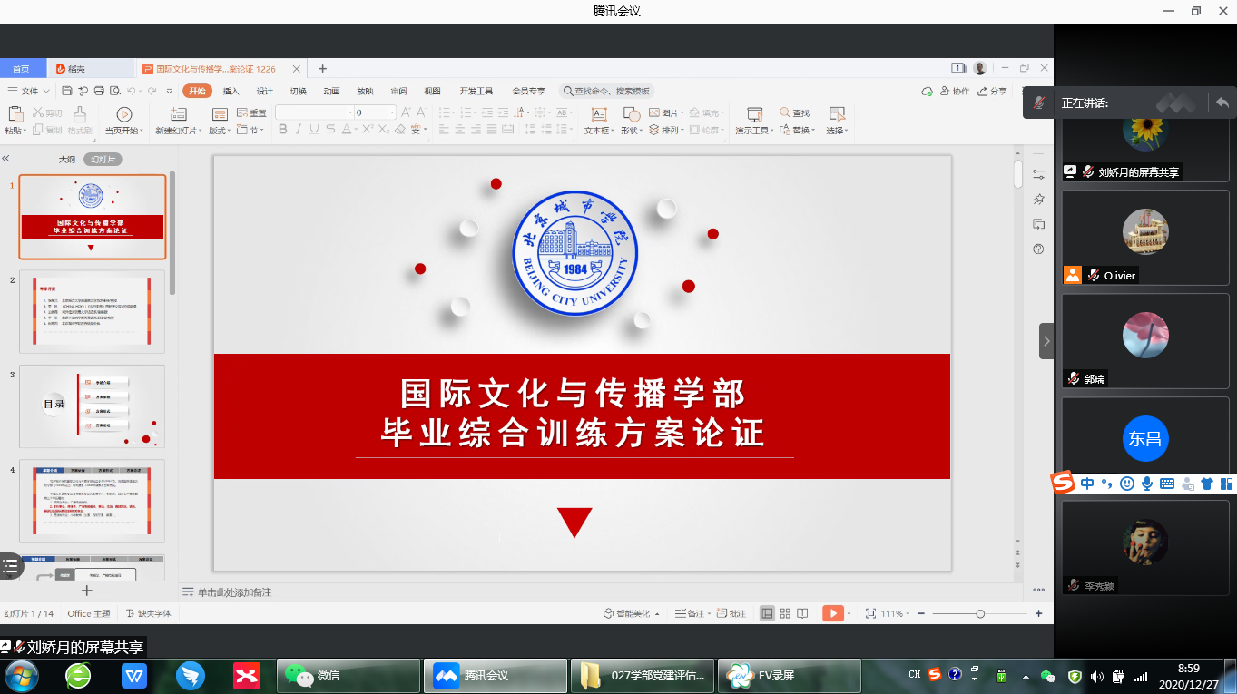 12月27日上午,國際文化與傳播學部召開了“外語專業畢業綜合訓練改革方案專家線上論證會”。此次論證會議邀請了來自對外經濟貿易大學、北京林業大學、北京聯合大學和今日中國雜志社及我校教務處在內的五位校內外專家。