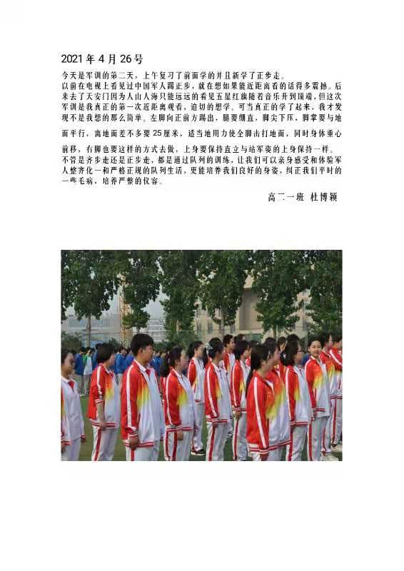 整齊劃一的隊形、嘹亮高昂的口號,彰顯了文傳貫通學子積極向上、拼搏進取的精神風貌。通過本次軍訓活動,學生們的身體素質、組織紀律、團隊意識等方面有了明顯的提高,下面是同學們的軍訓感言與收獲!